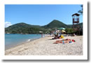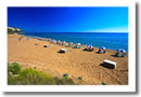 Έχει ρηχά νερά και είναι στρωμένη με αμμο, ενοικιάζονται ξαπλώστρες και ομπρέλες