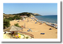 Πρόκειται για μεγάλου μήκους παραλία με άμμο και βότσαλο, η οποία διαθέτει ξαπλώστρες, ομπρέλες και εγκαταστάσεις υδάτινων σπορ. Η παραλία είναι ιδιαίτερα πολυσύχναστη και στη γύρω περιοχή θα βρείτε ποικιλία από ταβέρνες, εστιατόρια φαστ φουντ, καφετέριες και ξενοδοχεία.